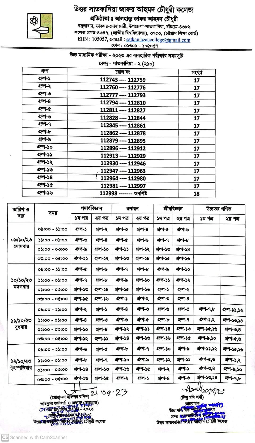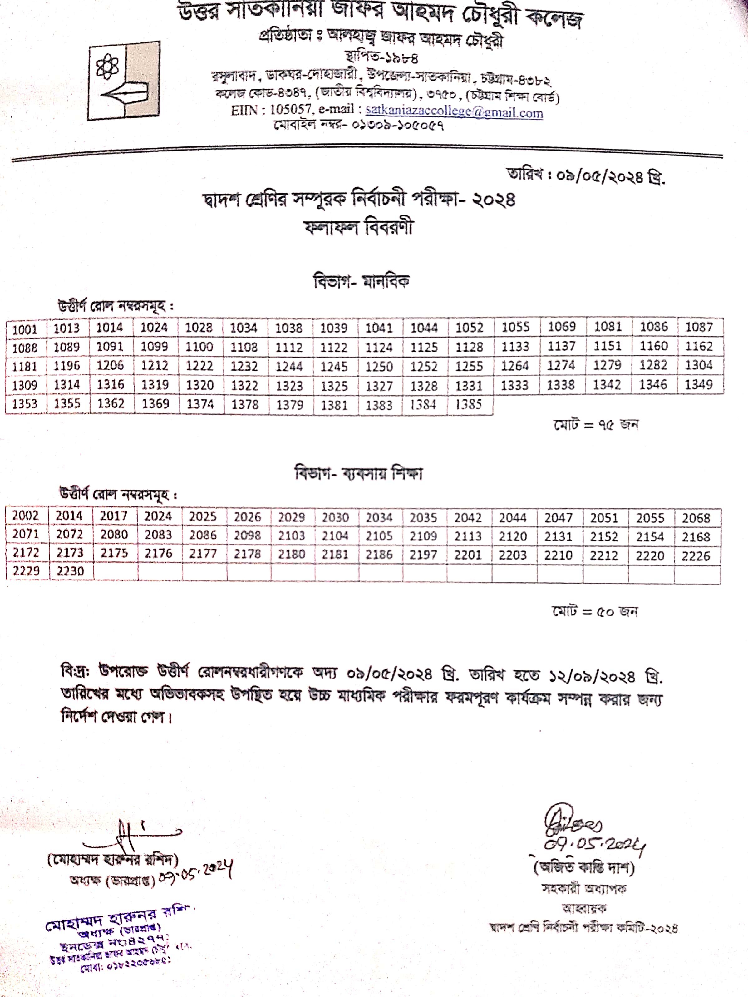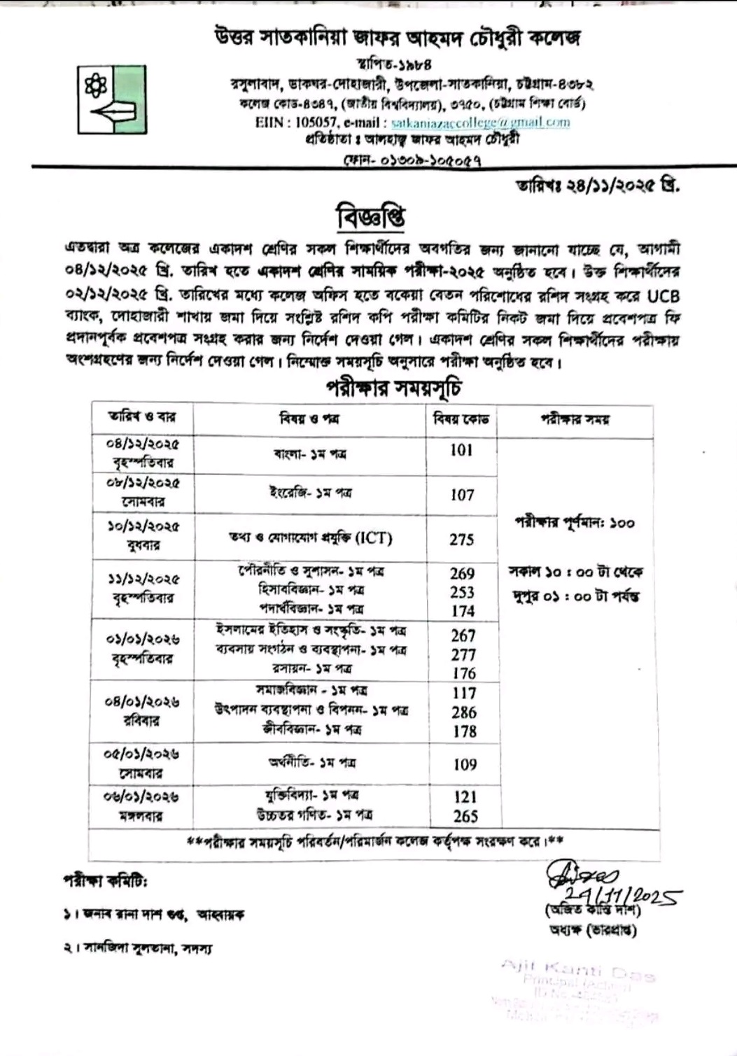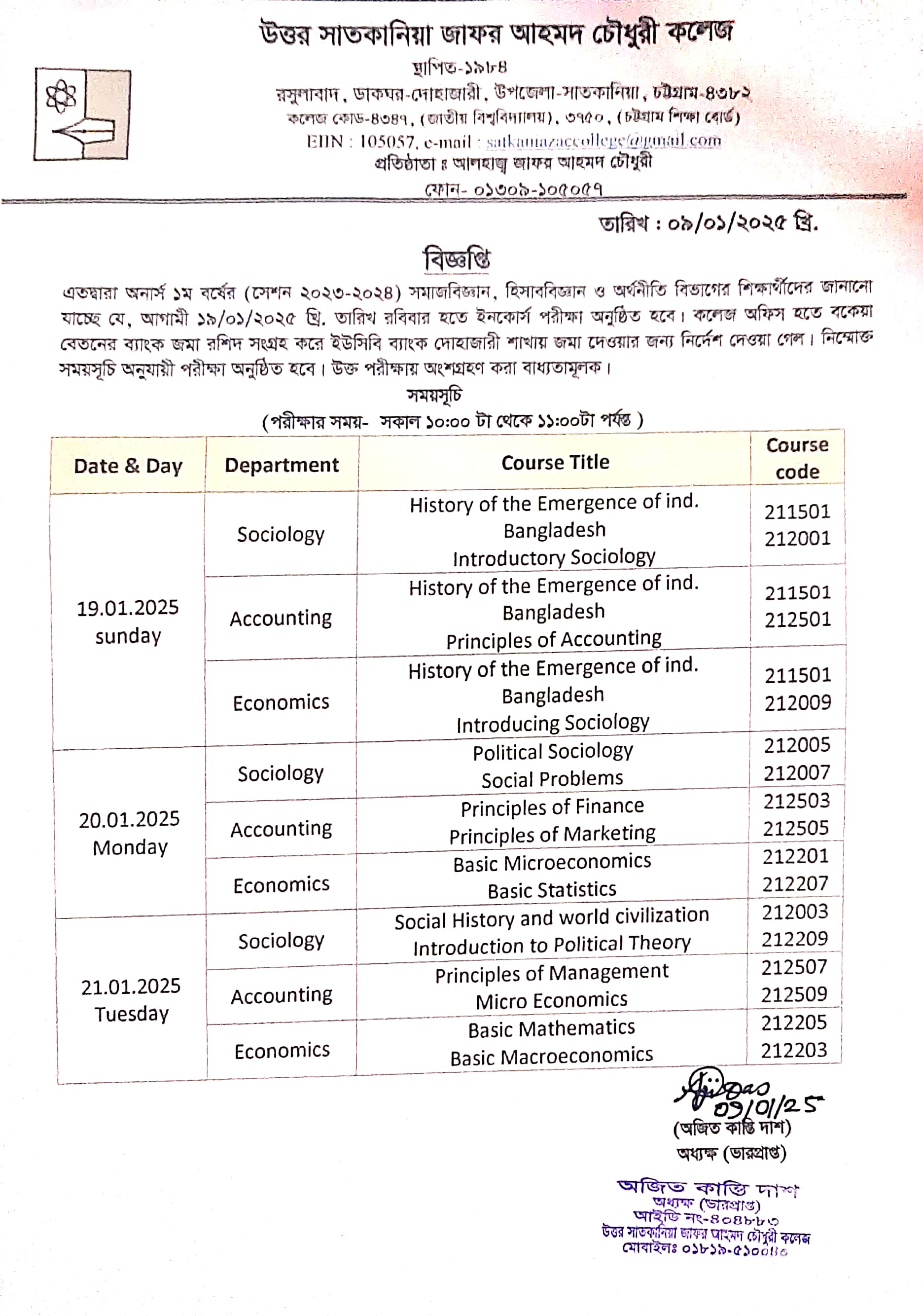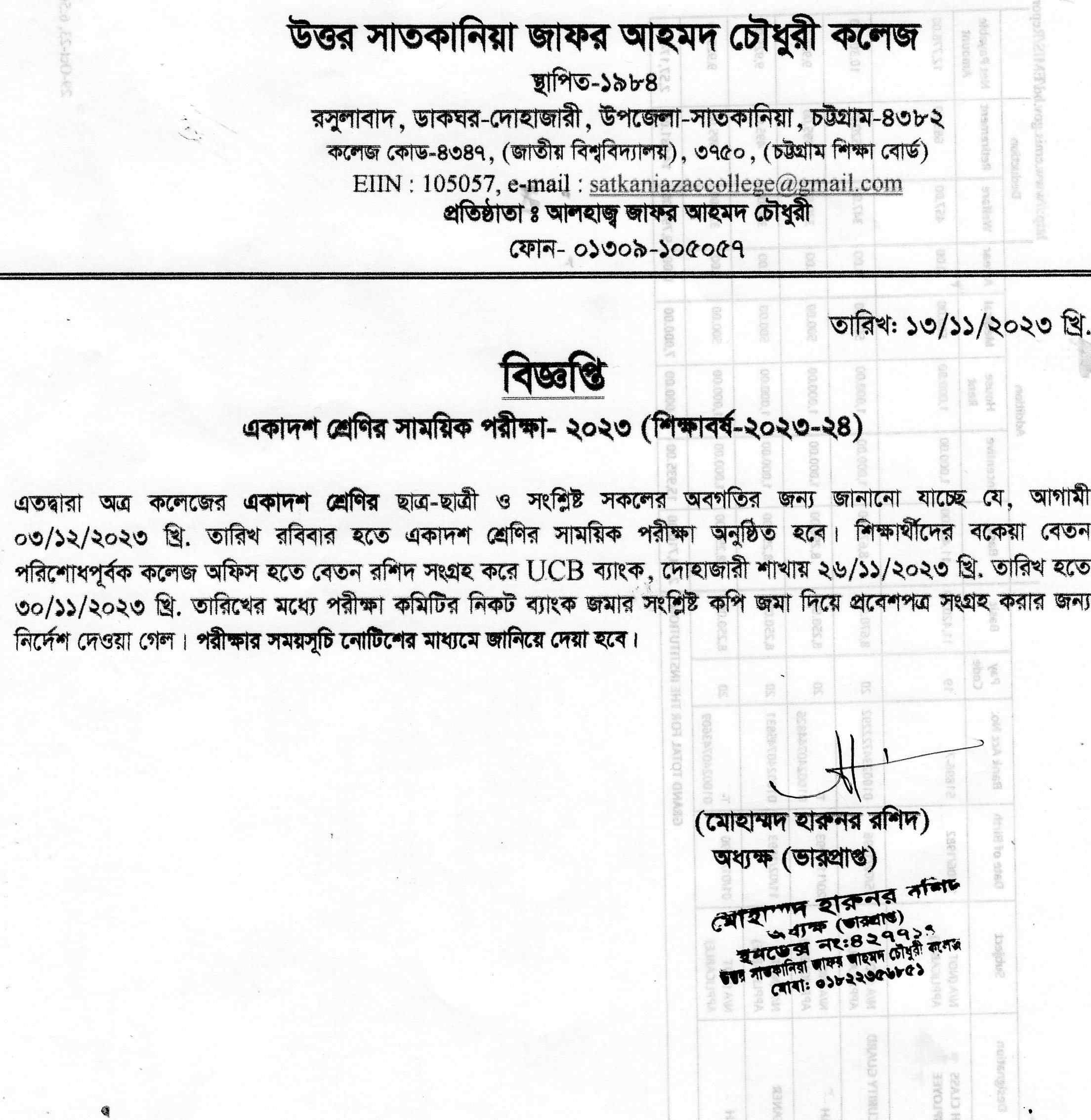 College Code : 4347 Rasulabad, PO: - Dohazari,, Satkania, Chattogram; 01309-105057