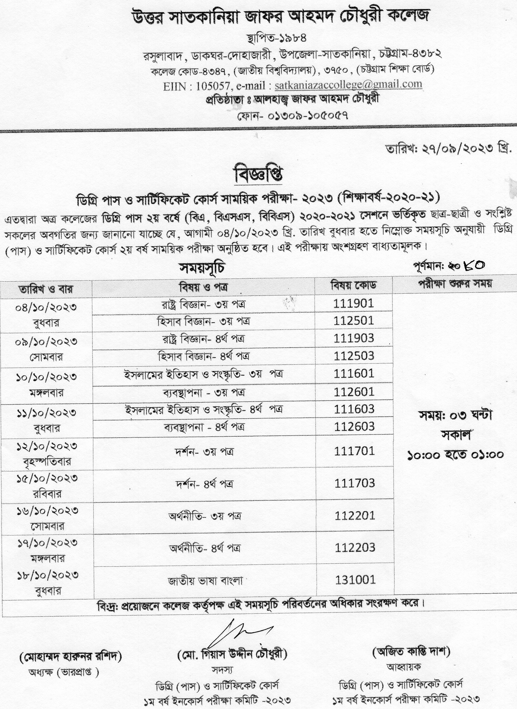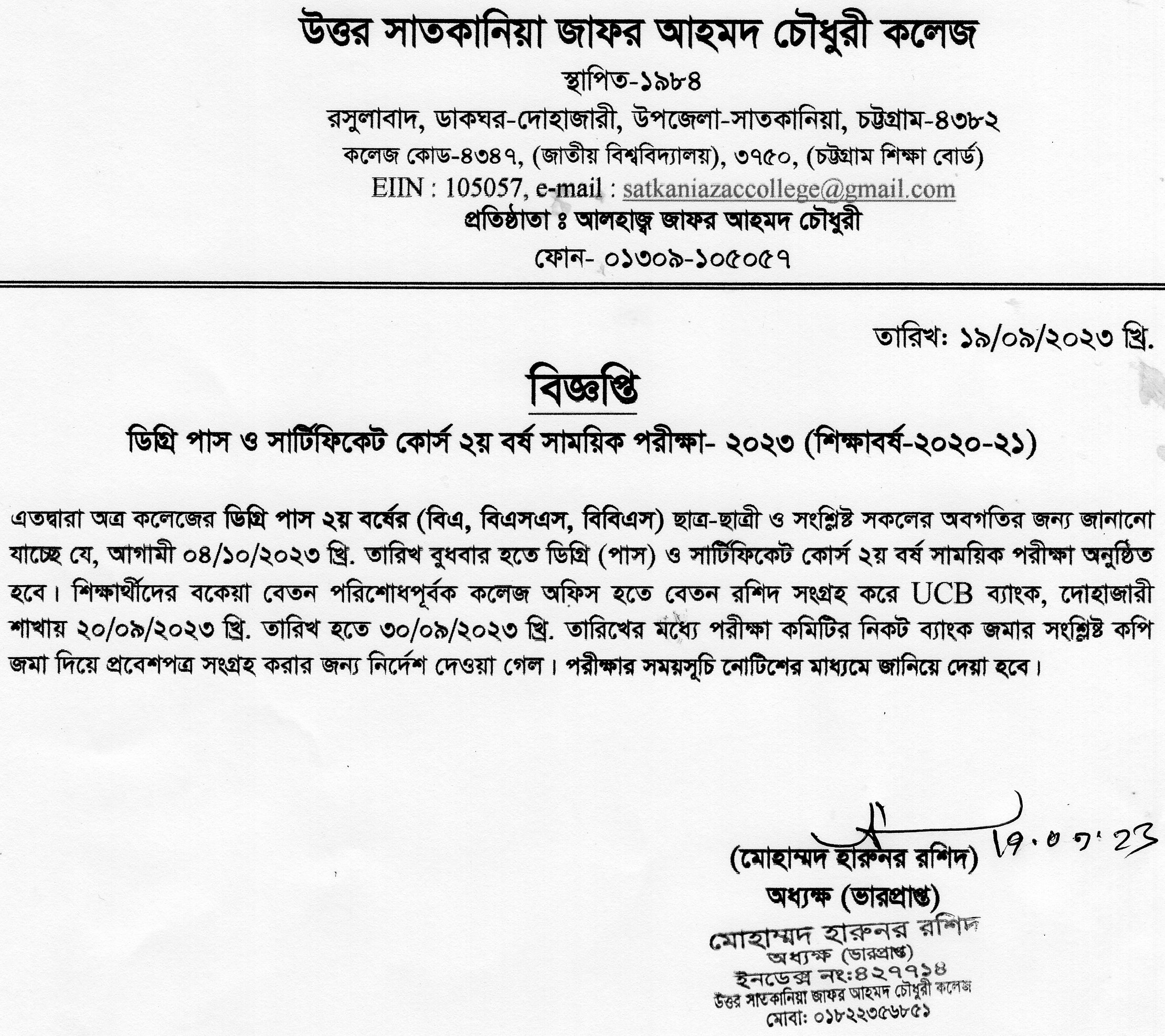 09/19/2023 ডিগ্রি পাস ও সার্টিফিকেট কোর্স দ্বিতীয় বর্ষের সাময়িক পরীক্ষার বিজ্ঞপ্তি।