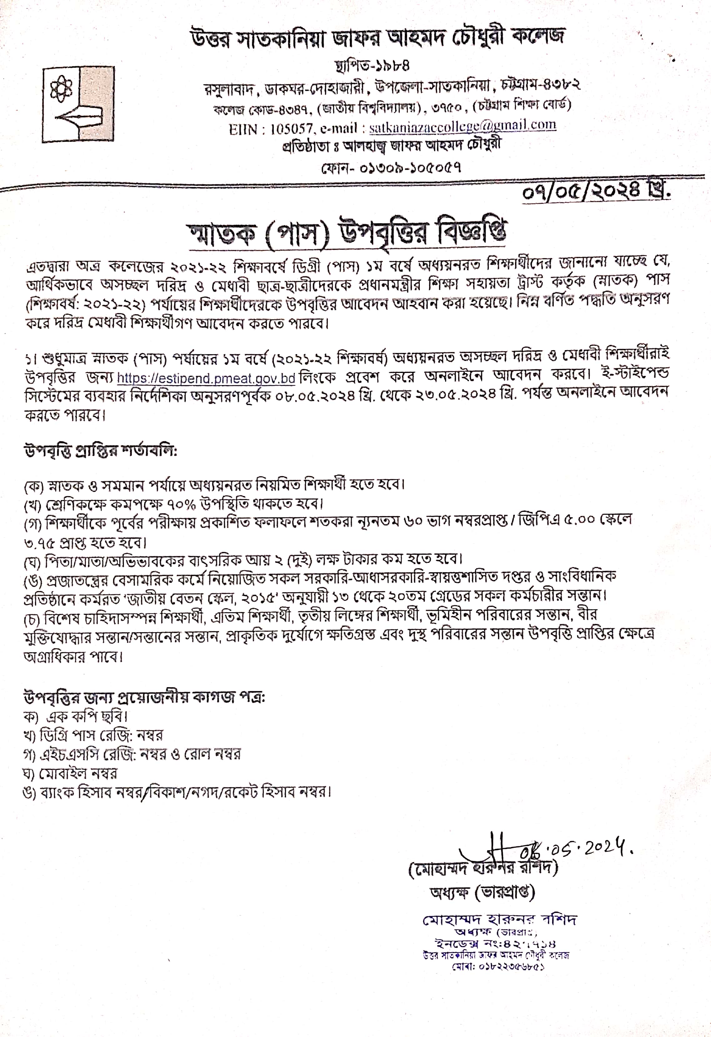 05/07/2024 স্নাতক পাস উপবৃত্তির আবেদন প্রসঙ্গে
