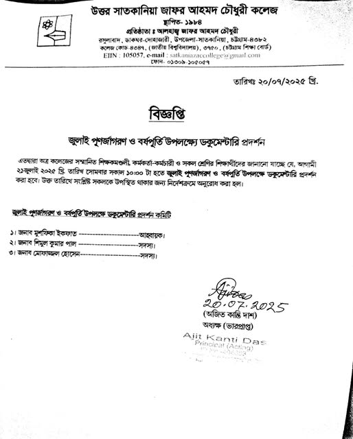 07/20/2025 জুলাই পূনর্জাগরণ ও বর্ষপূর্তি উপলক্ষে ডকুমেন্টারি প্রদর্শন।