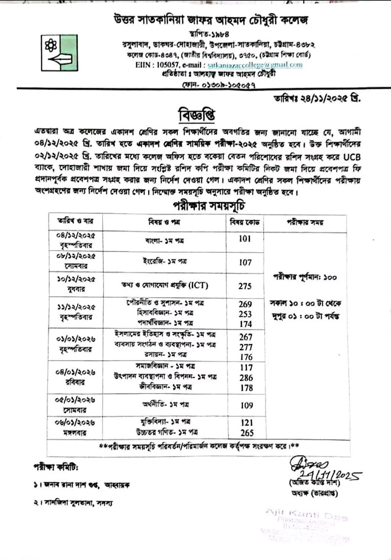 11/13/2023 একাদশ শ্রেণির সাময়িক পরীক্ষা সংক্রান্ত