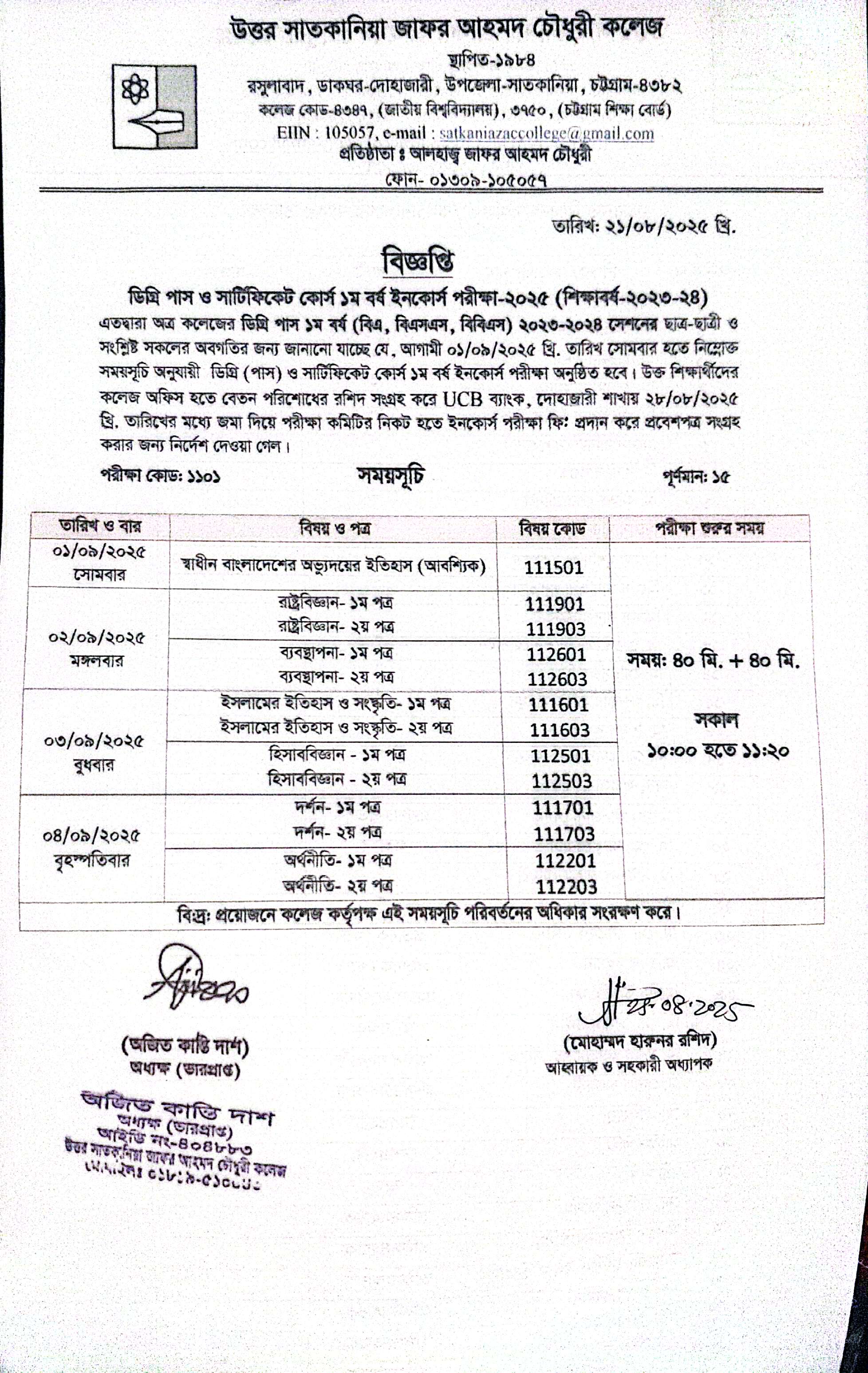 08/21/2025 ডিগ্রি পাস ও সার্টিফিকেট কোর্স প্রথম বর্ষের ইনকোর্স পরীক্ষা সংক্রান্ত বিজ্ঞপ্তি