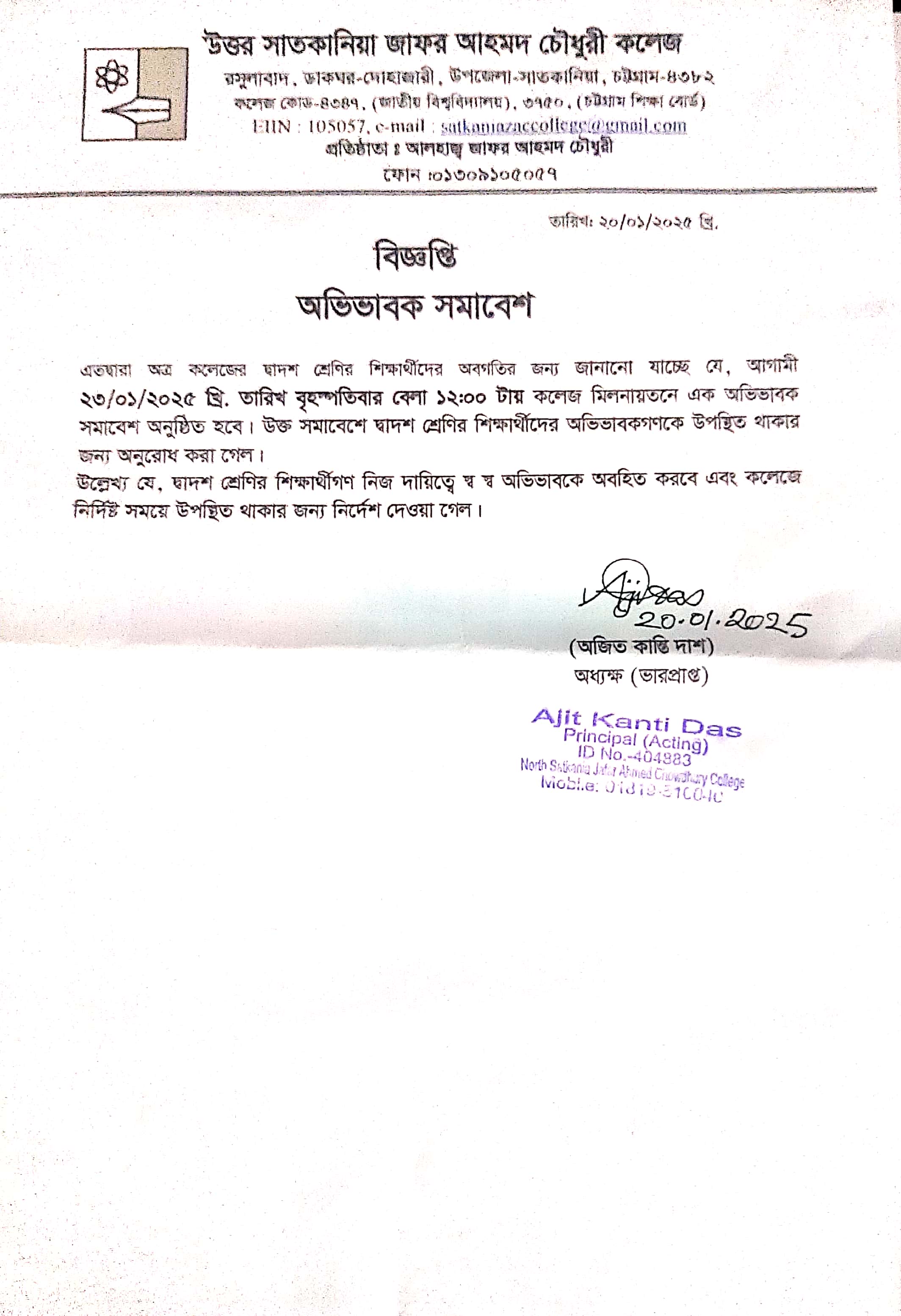 01/20/2025 দ্বাদশ শ্রেণীর ছাত্র ছাত্রীদের অভিভাবক সমাবেশ প্রসঙ্গে।