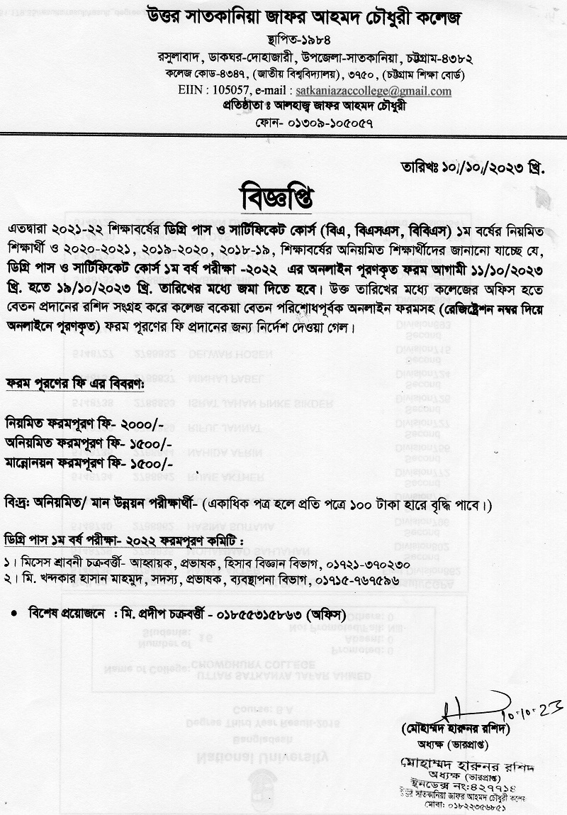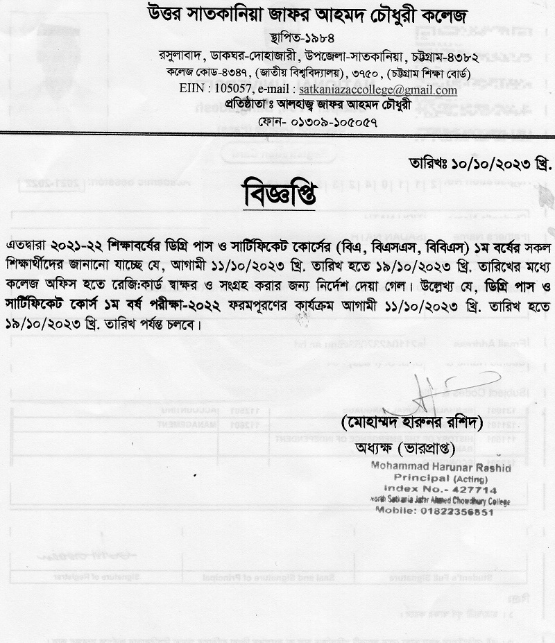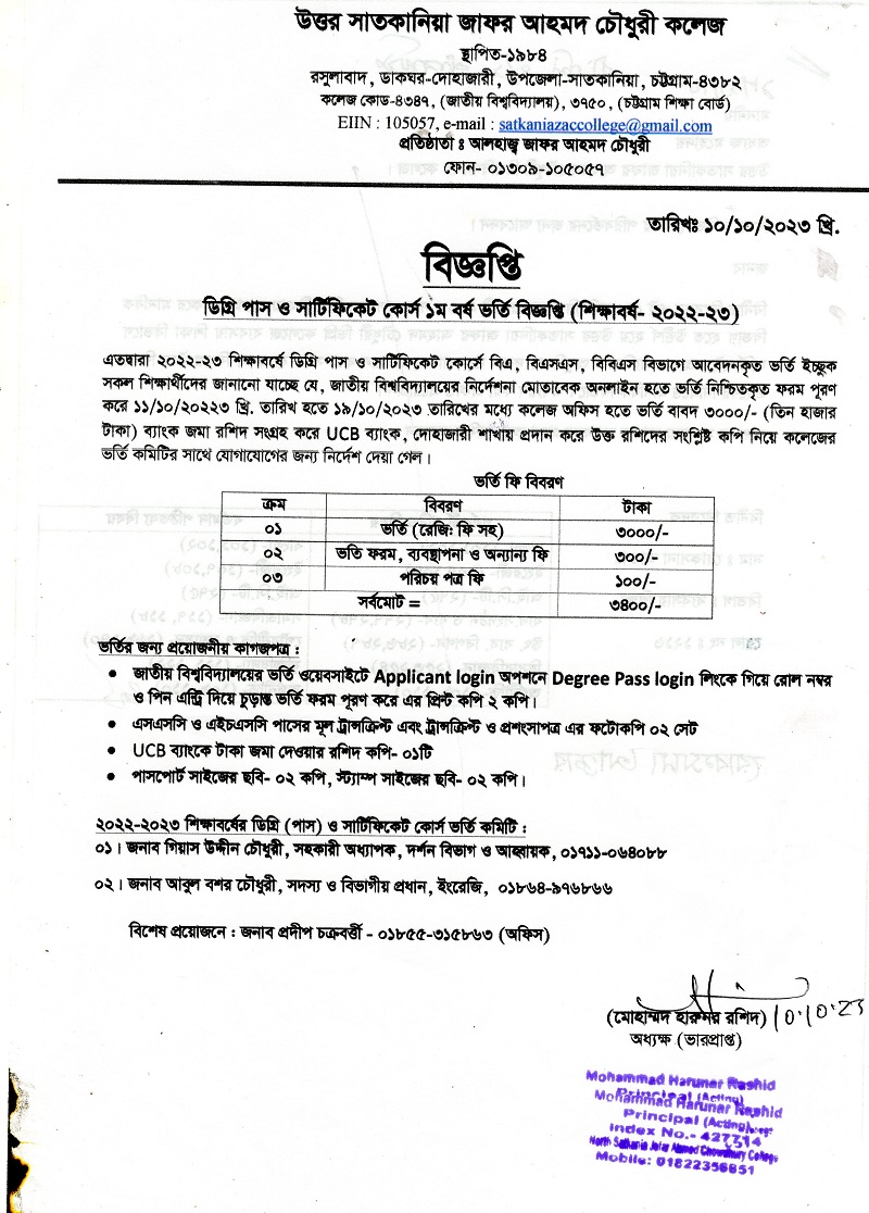 10/10/2023 ডিগ্রি পাস ও সার্টিফিকেট কোর্স প্রথম বর্ষ ভর্তি বিজ্ঞপ্তি-2022-23