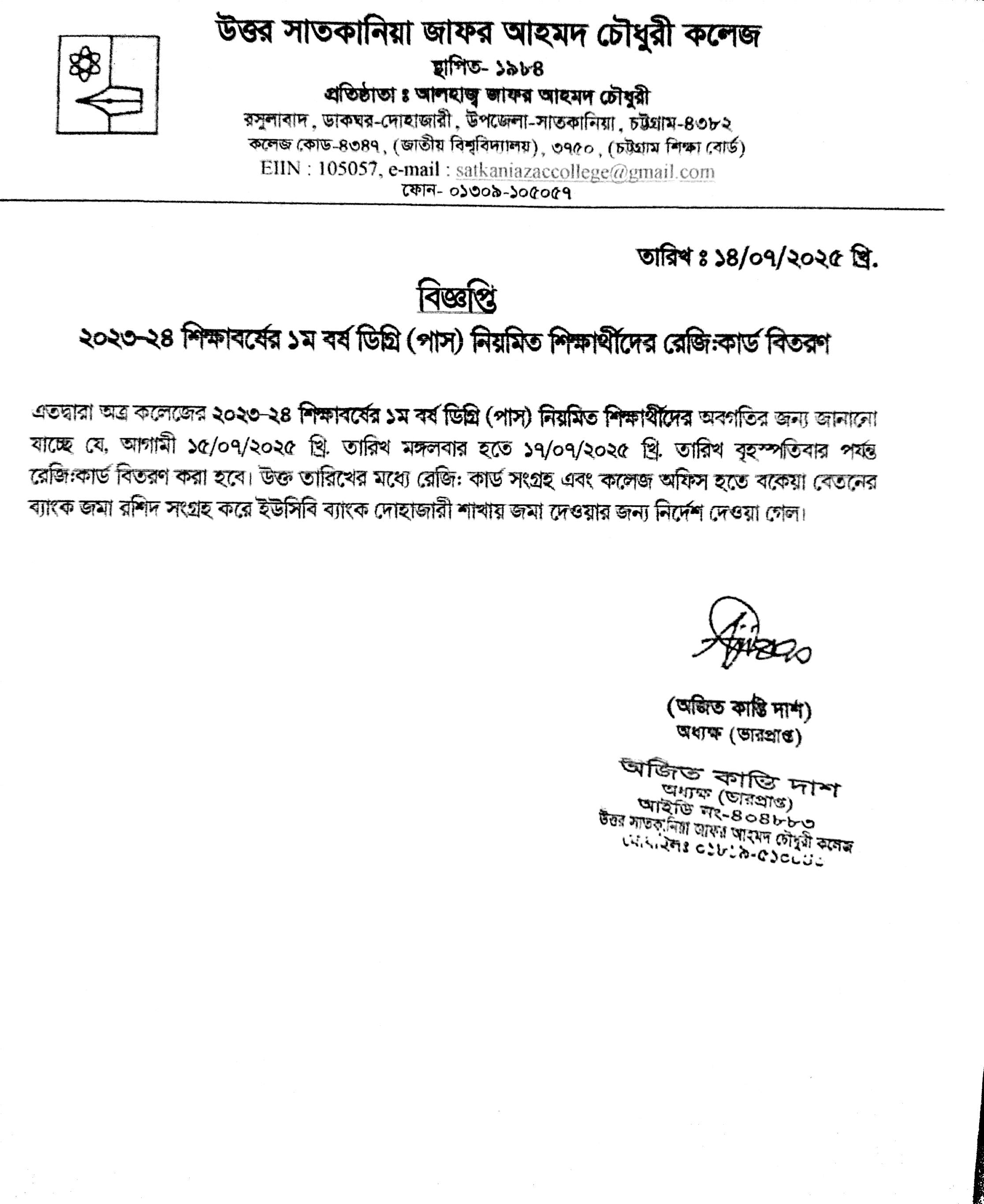 07/14/2025 2023-24 শিক্ষাবর্ষের 1ম বর্ষ ডিগ্রি পাস নিয়মিত শিক্ষার্থীদের রেজি:কার্ড বিতরণ