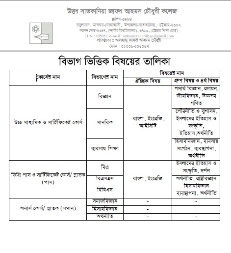 সুযোগ্য পরিচালনা পর্ষদের আন্তরিক প্রচেষ্টায় সম্পূর্ণ রাজনীতিমুক্ত ক্যাম্পাসে শিক্ষা ও সহশিক্ষা কার্যক্রম সুচারুভাবে পরিচালনার জন্য রয়েছে একঝাঁক সুযোগ্য, দক্ষ ও অভিজ্ঞ শিক্ষকমন্ডলী। উত্তর সাতকানিয়া জাফর আহমদ চৌধুরী কলেজ একাদশ-দ্বাদশ শ্রেণির শিক্ষার্থীদের জন্য শিক্ষাপঞ্জি প্রকাশের ব্যবস্থা করেছে, যাতে শিক্ষার্থীরা শিক্ষাপঞ্জি অনুসরণ করে সঠিক ব্যবস্থাপনায় শিক্ষাজীবন পরিচালনা করতে পারে এবং আধুনিক ও নৈতিক শিক্ষায় শিক্ষিত হয়ে তথ্য প্রযুক্তিতে দক্ষ, বিজ্ঞানমনস্ক ও দেশপ্রেমিক নাগরিক হিসেবে ভবিষ্যতে ডিজিটাল সোনার বাংলা গড়ার স্বপ্ন বাস্তবায়নে ভূমিকা রাখতে পারে ।